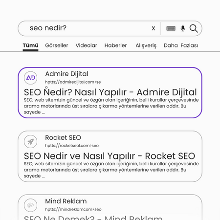 SEO, web sitenizin arama motoru sonuç sayfalarında üst sıralarda yer almasını amaçlayan iyileştirmeler bütünüdür. Üst sıralarda yer almak web sitenizin organik trafiğini artırarak ürün veya hizmetlerinizi arayan potansiyel müşterilerinize erişebilmenize yardımcı olur. Kullanıcılar organik sonuçlara ücretli sonuçlardan daha fazla güvenirler. Bu da kullanıcılara güven vermeniz ve reklam harcamalarınızın düşmesi anlamına gelir.